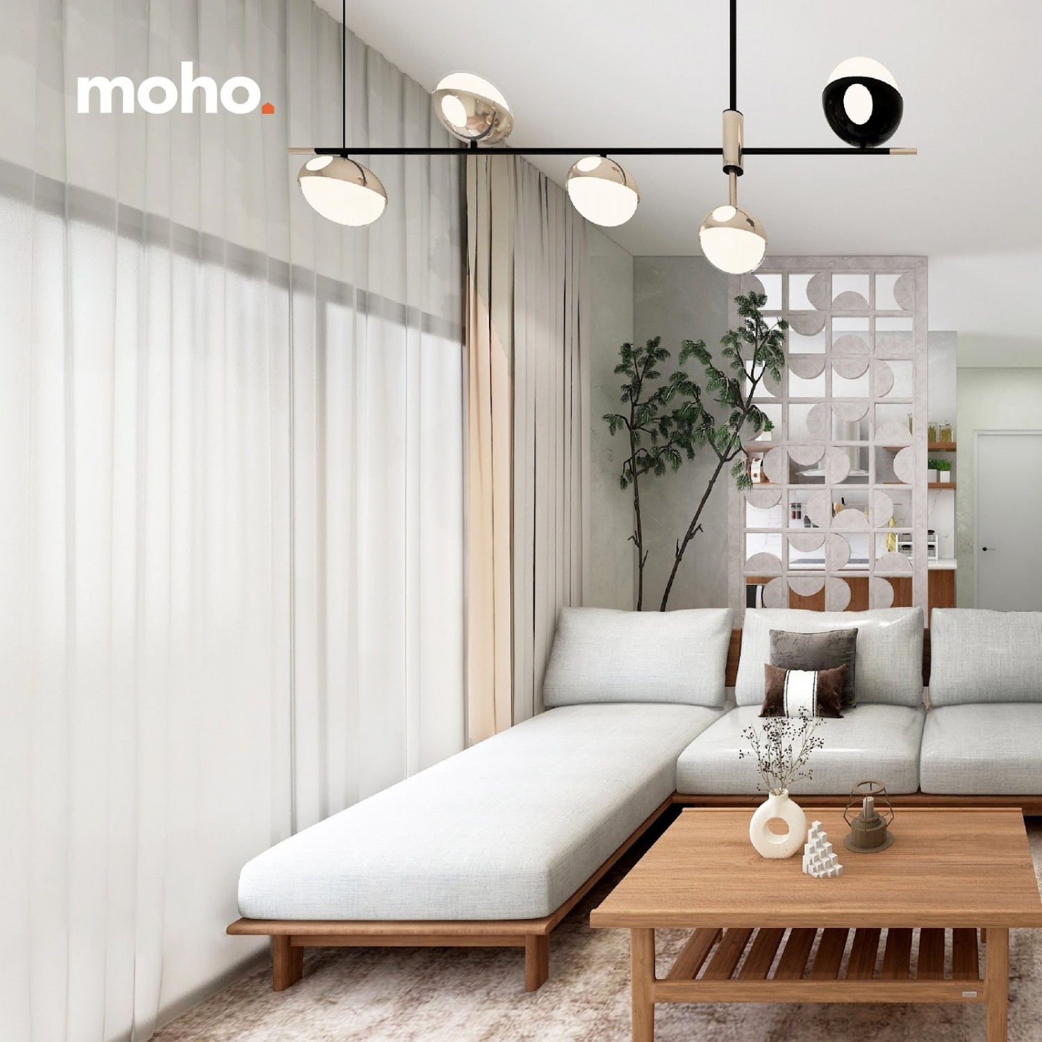 Đèn chùm và quạt trần làm không gian thoáng đãng nhưng dễ gây cảm giác căng thẳng nếu đặt trên đầu người ngồi. Nên đặt chúng ở giữa phòng hoặc trên bàn trà để không gây ảnh hưởng xấu.