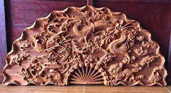 - Quạt gỗ tứ linh chạm khắc hình ảnh bốn con vật linh thiêng: long, lân, quy, phượng, biểu tượng cho may mắn, sức khỏe và phú quý. Treo quạt này giúp gia chủ gặp may mắn, bình an, thuận lợi trong công việc và cuộc sống.